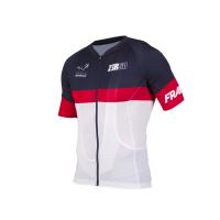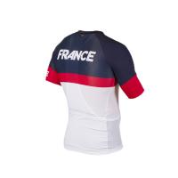Le maillot vélo manches courtes France est doté d'un zipper intégral qui vous aide à réguler votre ventilation. Ses trois poches à l'arrière vous permettent d'emporter vos ravitaillements et objets personnels. Il présente également une bande silicone à l'arrière pour plus de confort.